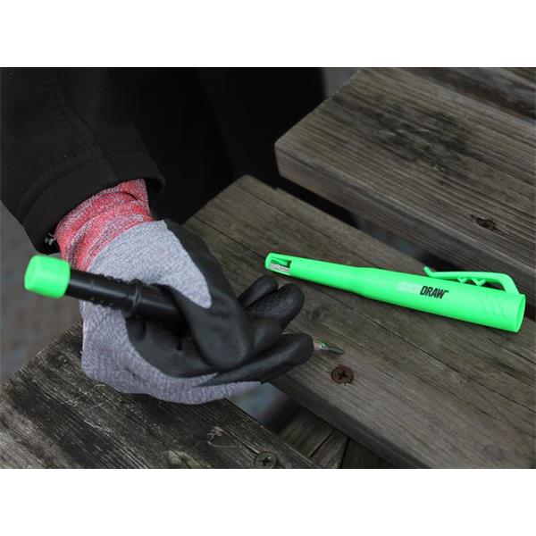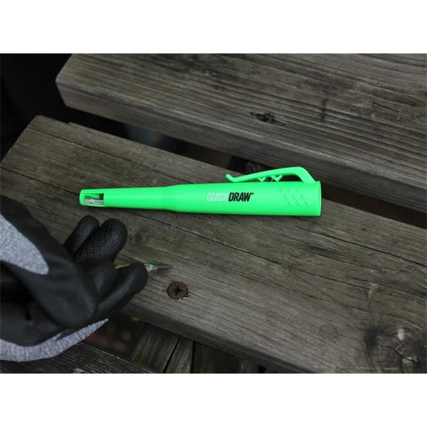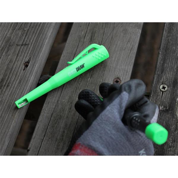 The Advent  Green QuickDraw Automatic Trade Pencil writes on almost any surface. Ideal for deep hole marking and general-purpose marking. Other features include a stainless steel lead-feed tube, integrated sharpener and a handy belt clip.