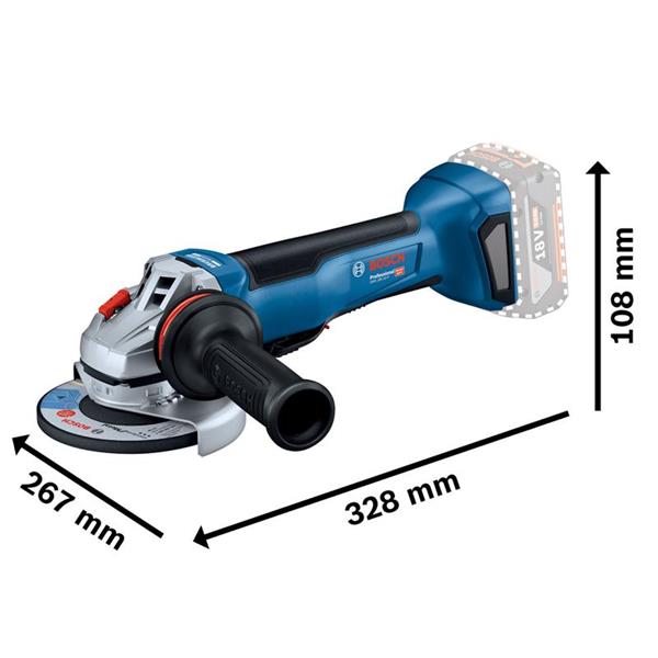 Bosch GWS 18V-10P Professional Angle Grinder offers an improved level of power and tool control in the 18V category. Equipped with KickBack Control and intelligent brake system, this small angle grinder offers an increased level of user protection and convenience. It also features a PROtection switch to instantly turn the grinder off when it is released, further maximising user protection. This tool is intended for cutting and grinding metal, stone, and concrete.