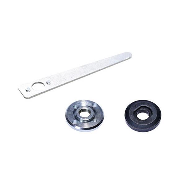 Supplied with: 1 x Backing Flange, 1 x Locking Nut, 1 x Auxiliary Handle, 1 x Two-hole Spanner and 1 x Protective Guard.
