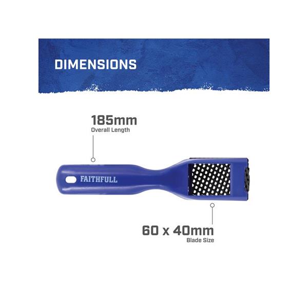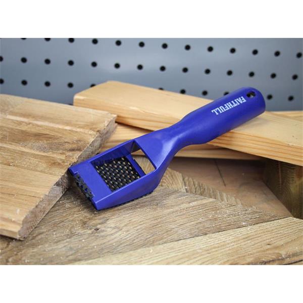 The Faithfull Hand Rasp Shaver Tool is suitable for removing material from all types of wood, aluminium, plastics, fibreglass and laminates. It can also be used for plaster and filler removal. The lightweight and strong ABS plastic body features a small head to allow fast stock removal in confined spaces. The durable metal rasp blade clicks into place, making its replacement tool-free and fast.