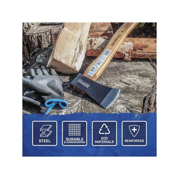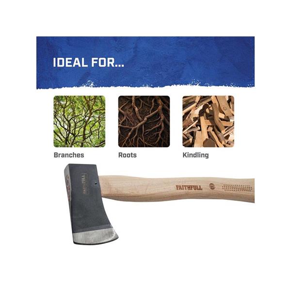 The Faithfull FSC Hickory Shaft Hatchet is ideal for trimming branches and root growth. Manufactured from carefully hardened and tempered quality carbon steel, the head is fully ground with polished cutting edges which are protected by a blade guard. Fitted with a traditional hickory handle which is known for its strength and ability to absorb impact. Made with FSC® 100% Certified Wood from well-managed forests.