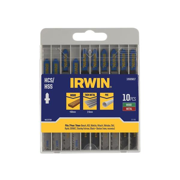 This 10 Piece IRWIN Jigsaw Blade Set contains the following:
