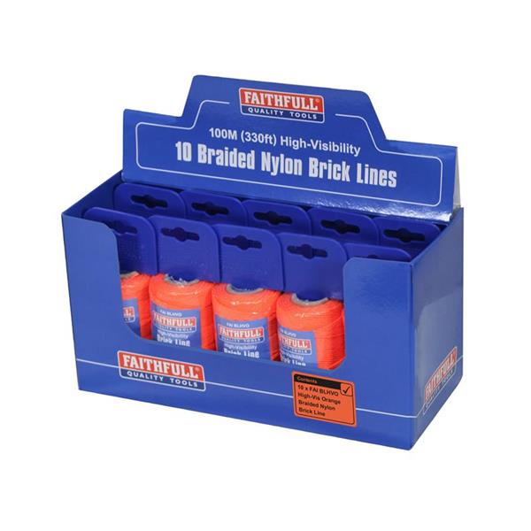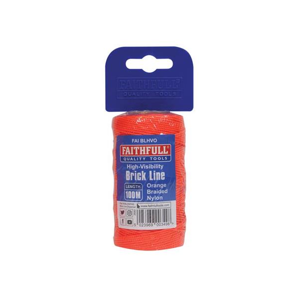 1 x Faithfull Hi-Vis Nylon Brick Line 100m (300ft) Orange.