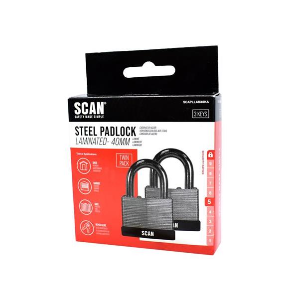 Scan Laminated Steel Padlock 40Mm Keyed Alike Pack Of 2