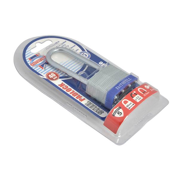 The FAIPLLAM40LS Laminated Steel Padlock features a 4-pin tumbler locking mechanism and has the following specifications: