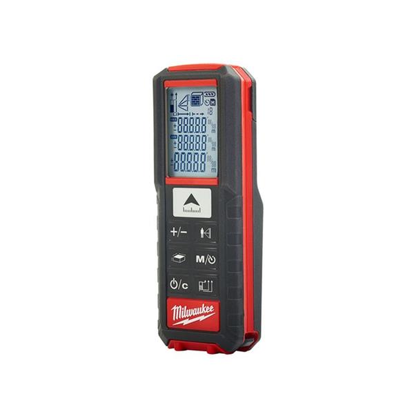 The Milwaukee LDM 50 Laser Distance Meter is easy to use thanks to the one person point and shoot system. The large 3 line LCD graphical display with automatic white backlight display shows metric units of measurement only. With memory recall for the last 20 measurements.