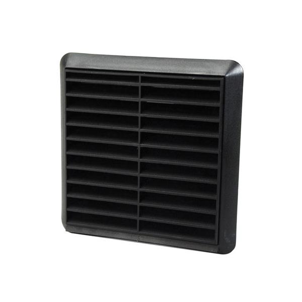 The Stadium 450BL Louvred Terminal Vent, 100mm in Black, is made of plastic.