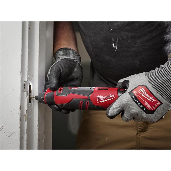 The Milwaukee M12 BLROT Brushless Rotary Tool is compact and balanced in all orientations, its design allows the user to hold the tool close to the work piece. It offers variable speed with 12 speed settings, easily set the correct speed for each application.