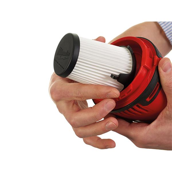 The Milwaukee M12 HV-0 Hand Vac offers excellent suction power for wood, metal and common debris. The clear viewing window gives the user the ability to see debris build up and a lock on switch reduces fatigue during sustained use.
