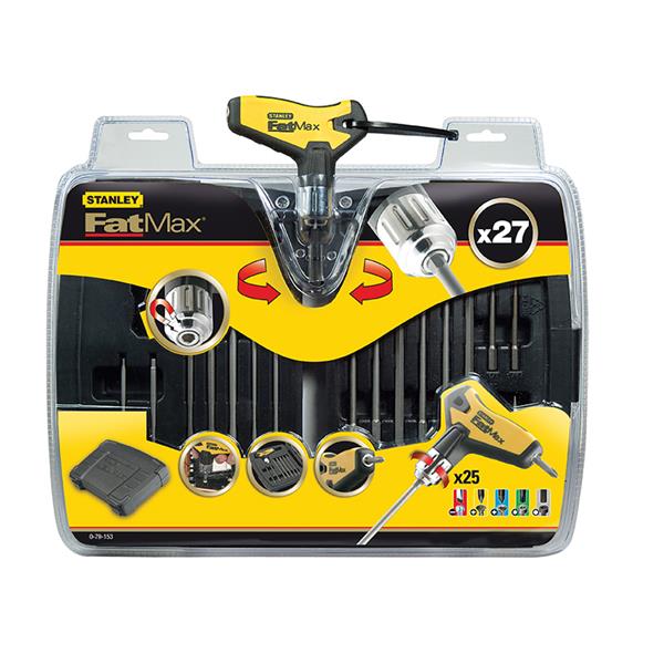 27 Piece Stanley FatMax® T-Handle Ratchet Power Key Set for rapid tightening and loosening of all fastener types. T profile enables extra torque for stubborn fasteners in all situations and applications. Contains: