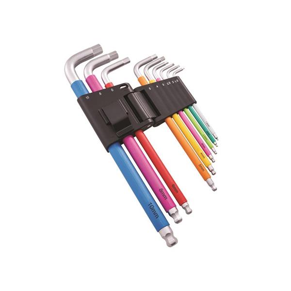 This Faithfull Multicoloured Hex Key Set contains a selection of professional quality keys made with S2 steel which makes it highly resistant to impact. The keys are colour-coded to allow for easy size identification and are held together by a plastic clip with a twist and lock action to secure the keys into their slots. The ball end design of the keys enables access to deep-set screws or hard-to-reach places at offset angles.