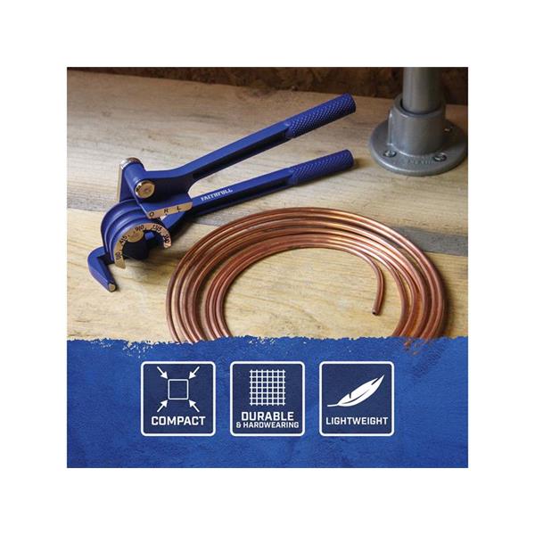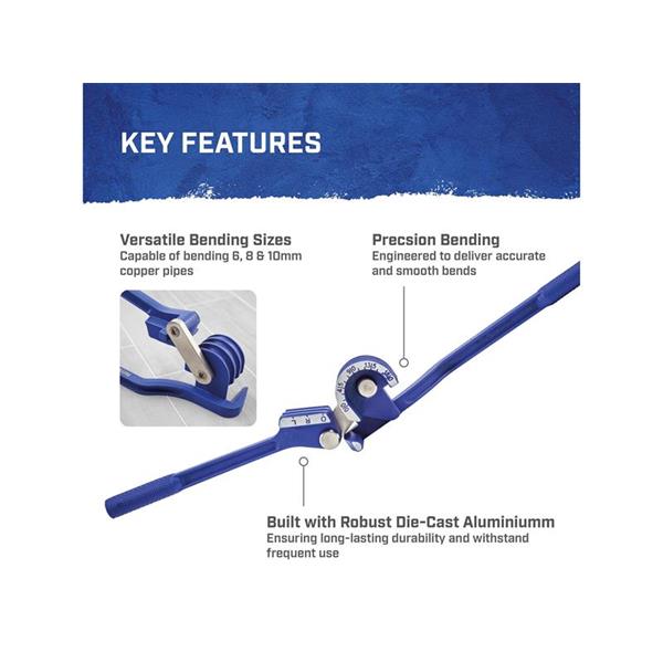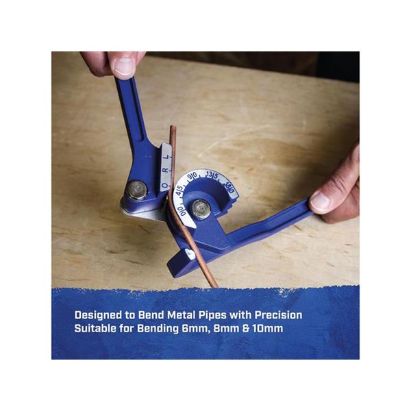 The Faithfull Mini Bender easily bends copper pipes with precision. Designed to handle 6mm, 8mm, and 10mm pipes, this compact tool is perfect for both professional and DIY applications. Made from high-quality die-cast aluminium, it ensures durability and reliable performance for all your pipe bending needs.
