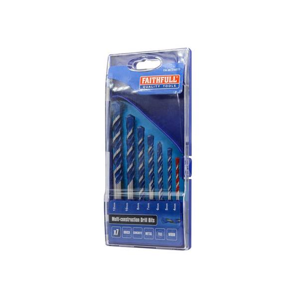 This 7 piece Faithfull Multi Construction Drill Set contains sizes: 4, 5, 6, 7, 8, 10 and 12mm.