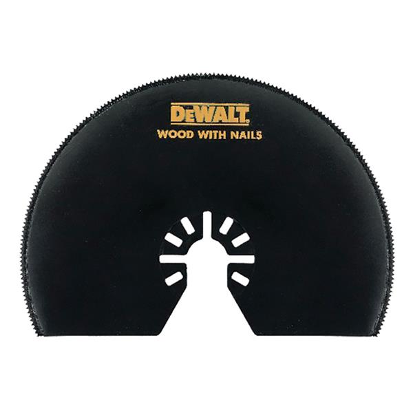 The DEWALT Multi-Tool Semi Circle Blade has 22 TPI for cutting wood with nails and other materials.