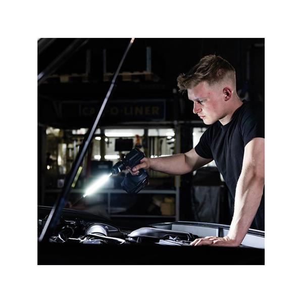 SCANGRIP® MULTILIGHT FLEX CONNECT Light with 750 lumen flex head light. It offers 2 lighting settings: 50% or 100%.