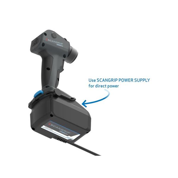 -An 18V battery from a leading power tool brand, such as Milwaukee, DeWalt, Makita, etc., by using the SCANGRIP® CONNECT CONNECTOR.