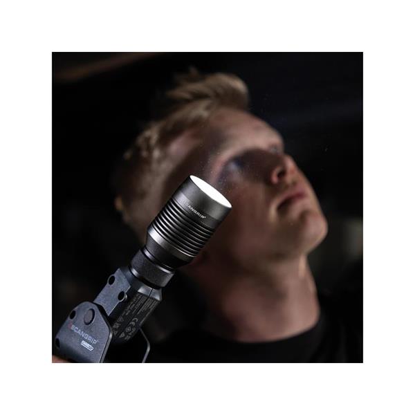 SCANGRIP® MULTILIGHT SEARCH CONNECT Light with 600 lumen search head light. It offers 2 lighting settings: 50% or 100%. The focus function zooming beam angle can be adjusted between 10° and 70°.