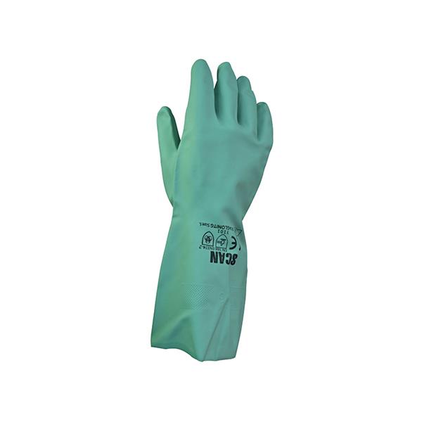 The Scan Green Nitrile Gauntlets are fully coated with a flock lining for moisture absorption. Gauntlets are food contact approved and offer superior chemical resistance to EN374-2 standard, protecting against oil, grease and most household chemicals. They are also resistant to abrasions and provide excellent grip. The long cuff provides added wrist protection.