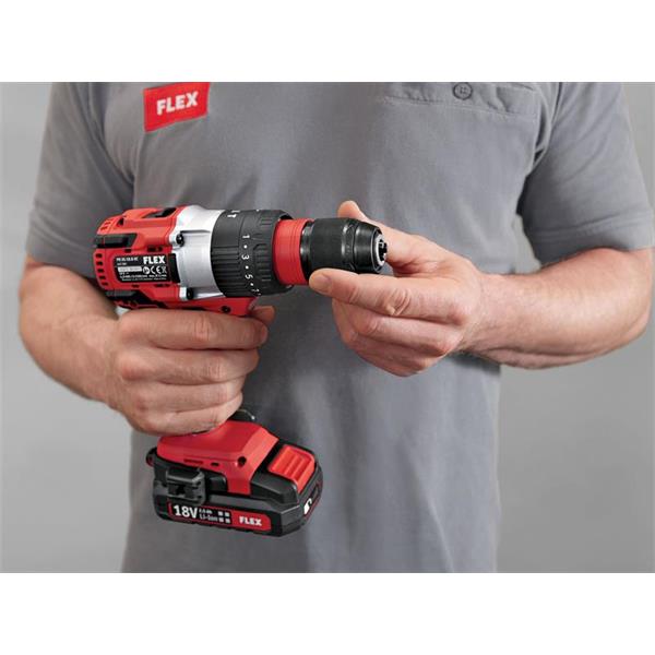 The Flex PD 2G 18.0-EC/2.5 Brushless 2-Speed Impact Drill with greater efficiency and a longer service life. Its accelerator trigger switch features a locking function. Quick-acting electronic brake for added user safety.