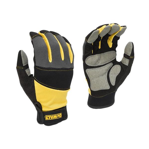 The DEWALT DPG215L EU Performance Gloves have a double palm overlay and extended custom wrist closure for increased comfort. Other features include neoprene knuckles and a terry cloth insert on the back of the hand, ideal for wiping your brow.