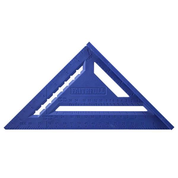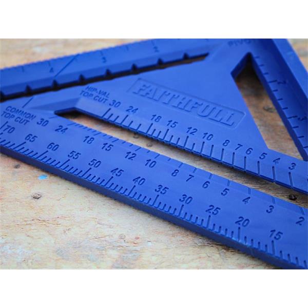 The Faithfull Plastic Quick Square, also known as a layout or angle square, is a tool designed for carpenters to quickly and accurately mark out for building projects, particularly when constructing roof rafters. Manufactured from engineering plastic and has imperial graduations marked with degree measurements to make material layout and timber cutting easier.