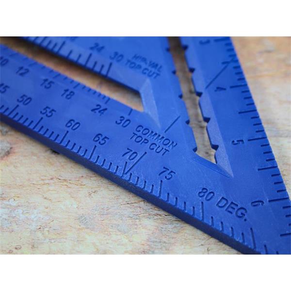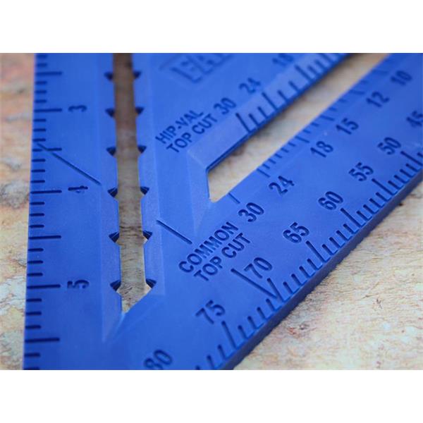 It can be used as a protractor, try square, mitre square, framing square, or for measuring quick and easy 90 and 45 degree angles. The square is durable, flexible, and the ideal tool to calculating hips, valleys and angles on roofs.