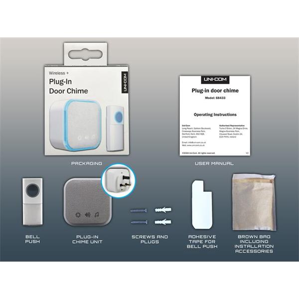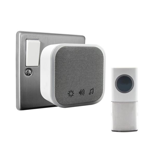 Wire-free door chime that simply plugs into any 13A socket around your home. The Door Chime is wireless, so no wiring is required, and with an extensive operating range of up to 150m, you never have to miss a visitor or delivery. With 30 different chime melodies to choose from, 90dB(A) sound output with volume control and a flashing blue chime alert, you will always know when somebody is at your door.