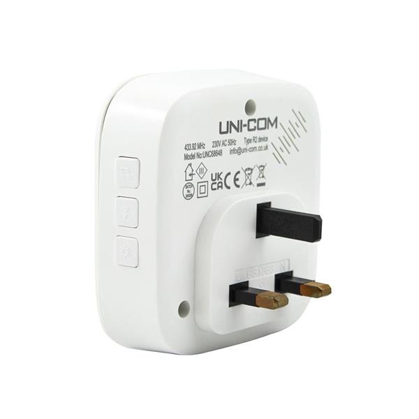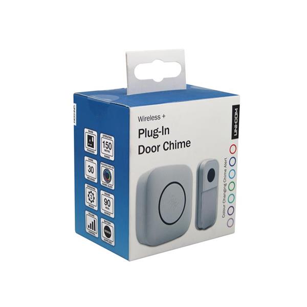 The Uni-Com Plug-in Door Chime is ideal for use around the home, plugs into any 13A socket around your home. The door chime is wireless, so no wiring is required, and with an extensive operating range of up to 150m, you never have to miss a visitor or delivery. The bell push is water resistant (IP44 rated).