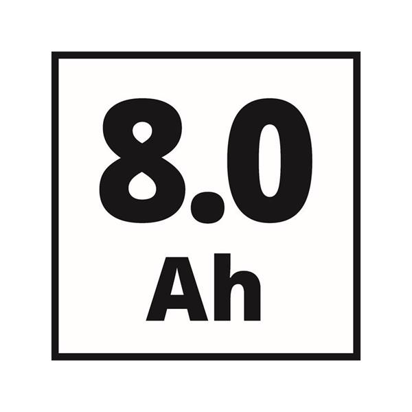 The Einhell Multi-Ah Power X-Change Battery can be operated as an 8.0Ah battery for maximum runtime or as a 5.0Ah battery for a 3x longer total service life. The latest generation of lithium-ion cells provides 100% more power for maximum performance in all applications, with a 13% more compact design and 12% weight reduction. PLUS technology also means extra power for intensive work. In addition, the high-quality battery resists the memory effect and the self-discharge which usually occurs in batteries for constant, high power.