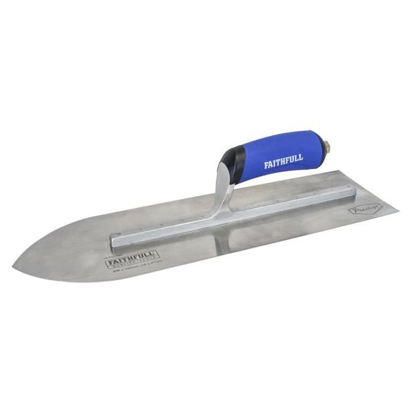 The Faithfull Prestige Cement Trowel has been designed for applying mortar or cement over large surface areas. Commonly used for laying flooring. This trowel has a long blade with a pointed end shape, to allow access to corners when final finishing a flat surface.