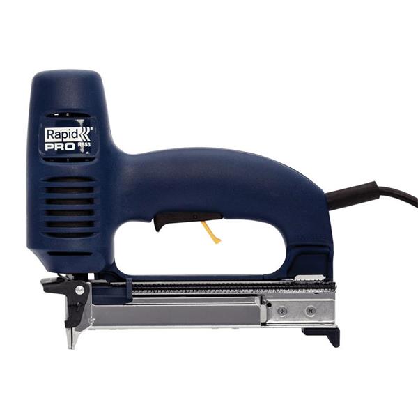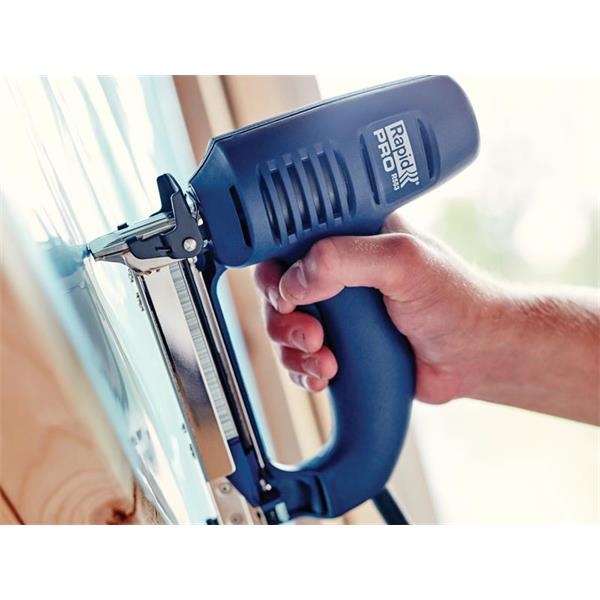The Rapid PRO R553 Electric Staple/Nail Gun is ideal for professional users who need precision stapling and nailing. Featuring robust parts and quality construction, the R353 offers longer working life even when used intensively. It is particularly effective when used for furniture upholstery work or other types of fabric, carpets, leather or more sensitive textiles.