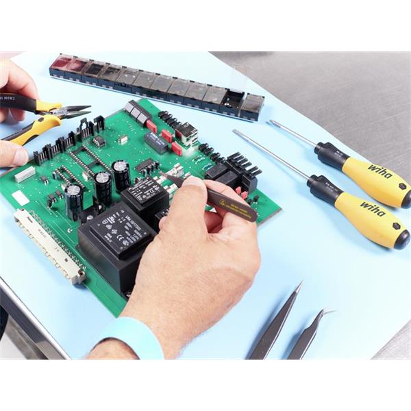 This Wiha Professional ESD SMD Tweezer Set are for the most common applications. Electrostatically conductive tools protect electronic components from damage. Conforms to DIN EN 61340-5-1.