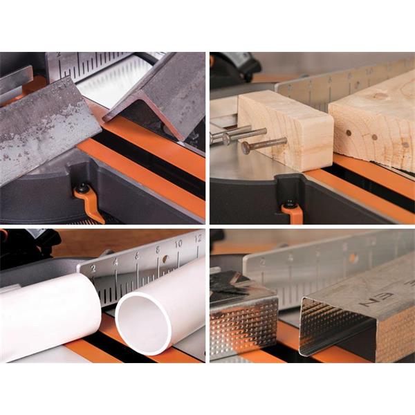 The Evolution R185SMS+ 185mm Multi-Material Sliding Mitre Saw can cut a variety of materials, such as mild steel, aluminium, wood with embedded nails, plastic, copper and more. Cuts mild steel with no heat, no burrs and virtually no sparks, leaving ready-to-weld cuts making it perfect for efficient on-site use.