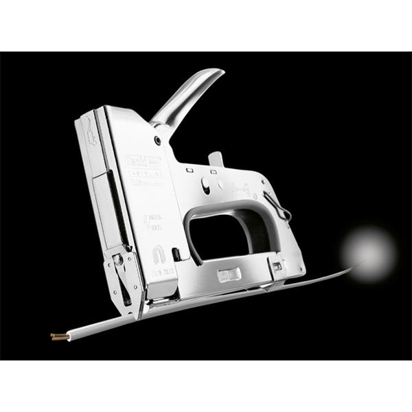 The Rapid R28E is suitable for low-voltage cables of maximum 50 Volt, up to 4.5mm diameter, such as telephone, TV, alarm and speaker cables. It is compatible with Rapid No.28 Cable Staples 9-11mm.