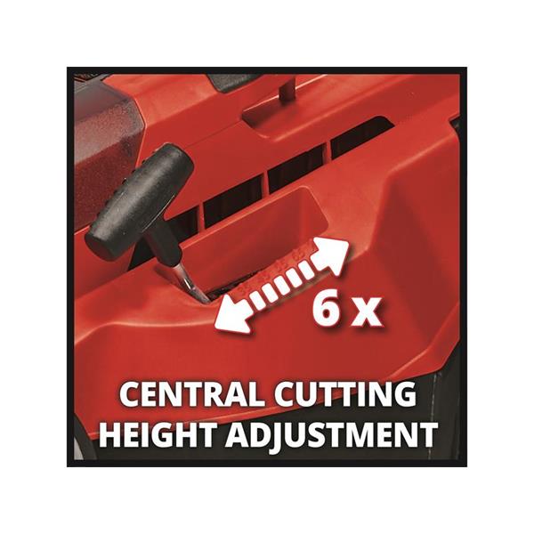 In the process, the 6-level central cutting height adjustment from 25 to 75mm and a cutting width of up to 38cm can be adapted to suit your individual lawn requirements. The integrated grass comb will even allow you to cut the grass right up to the edges. The grass box has a capacity of 45 litres and comes with a practical filling level indicator.