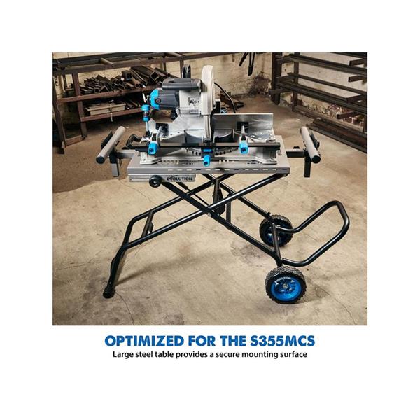Evolution S355mcs Mitre Chop Saw Wheeled Stand With Powerlift Assist