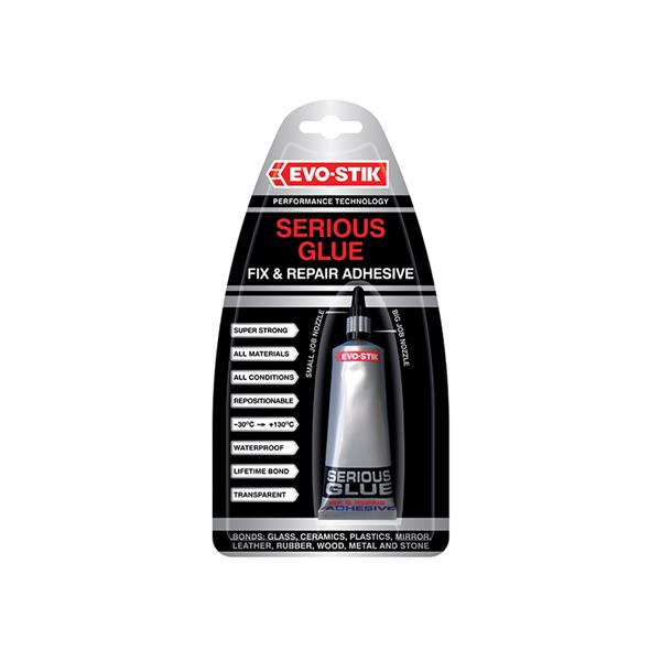 EVO-STIK Serious Glue is seriously strong. It’s both waterproof and temperature resistant. It can be used on a wide range of materials, making it ideal for fixing and repair jobs inside and outside the home.