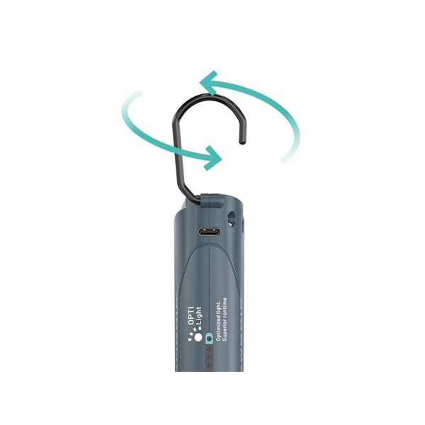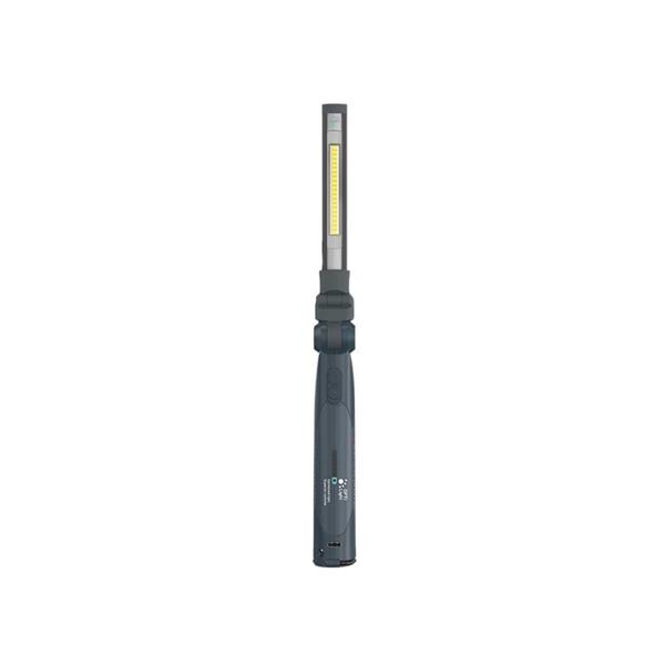 It has a built-in magnet and hook, as well as a flexible 100 % foldable body offering flexible positioning options. The design allows for traditional hand-held use, and its compact size ensures portability anywhere. When folded, it easily transforms into a flashlight that provides a firm grip. In addition, a user-friendly battery indicator keeps you informed about the battery level.