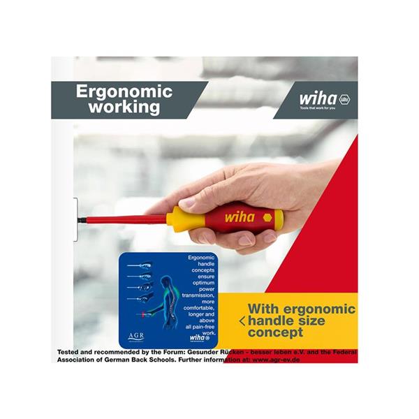 Patented SoftFinish® handle ensures work is kind to hands and muscles. Recommended by doctors and therapists at the German Campaign for Healthier Backs. The unique Wiha handle-length concept provides optimum balance of torque and control.