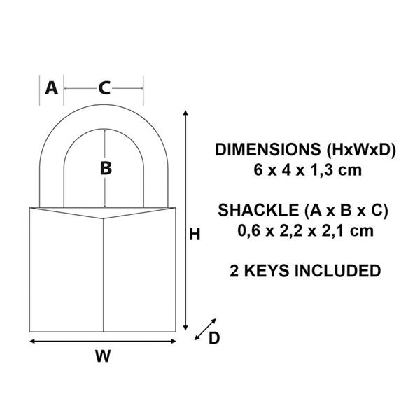 40mm solid brass padlock - 22mm hardened steel shackle, 6mm diameter - 4-pins