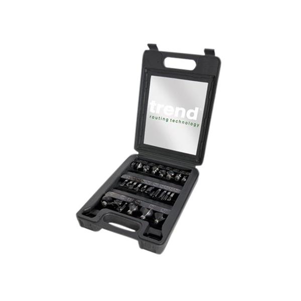 24 Piece Trend SET/SS24X1/4TC Starter Cutter Set with a range of popular TCT cutters for a variety of applications. Suitable for softwood, hardwood, chipboard, plywood and MDF. Supplied in a plastic carry case.