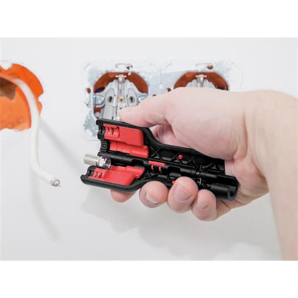 The Wiha Stripping and Assembly Tool offers the user all the necessary functions required for processing a coaxial cable with F-screw connector in one compact tool.