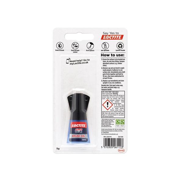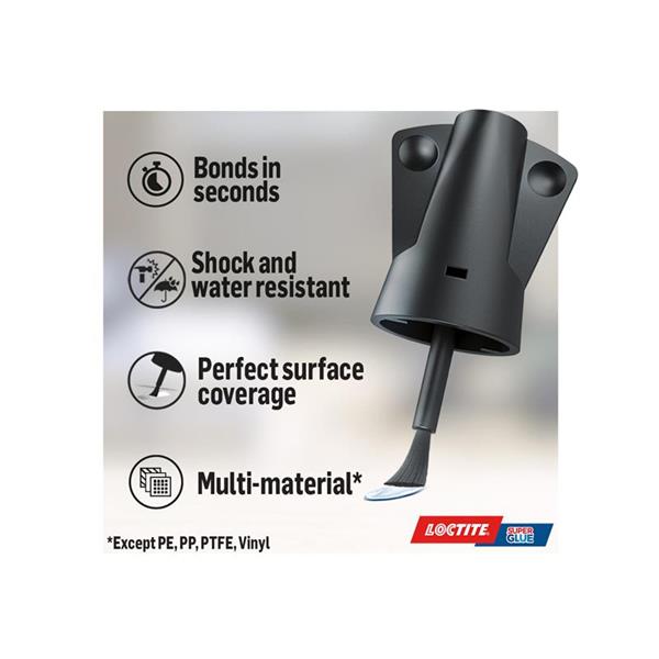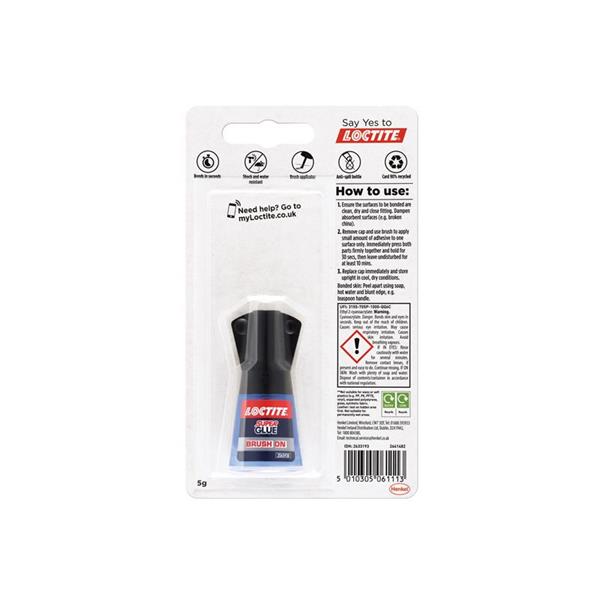 Loctite Super Glue Brush On comes in a spill-resistant bottle for safe storage. With a built-in brush applicator ensuring ease of application and glue-free handling. The liquid formula works well on a variety of porous and non-porous surfaces. It's also resistant to moisture, most chemicals and freezing temperatures. The powerful formula has been developed to form resilient bonds to then dry transparent to form long-lasting invisible bonds.
