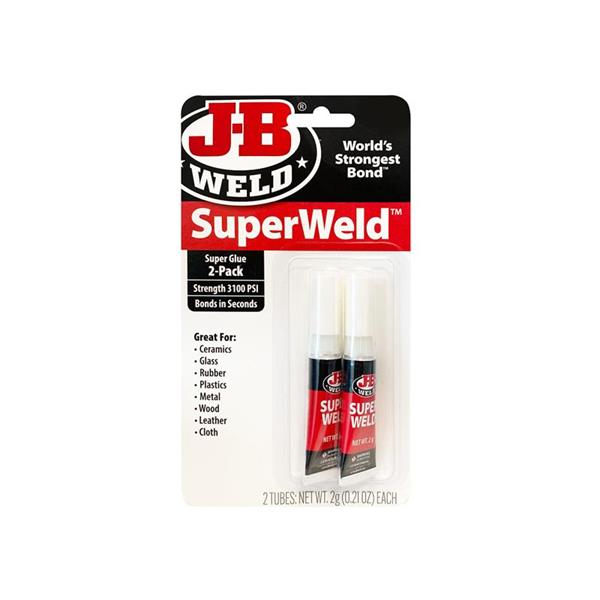 J-B Weld SuperWeld™ is a specially formulated cyanoacrylate Super Glue that provides a strong, instant bond in just seconds. It works on multiple and hard to bond surfaces. Its exceptionally high strength provides a permanent repair to almost anything. Ideal for a wide variety of applications; ceramics, glass, rubber, plastics, metal, wood and leather.