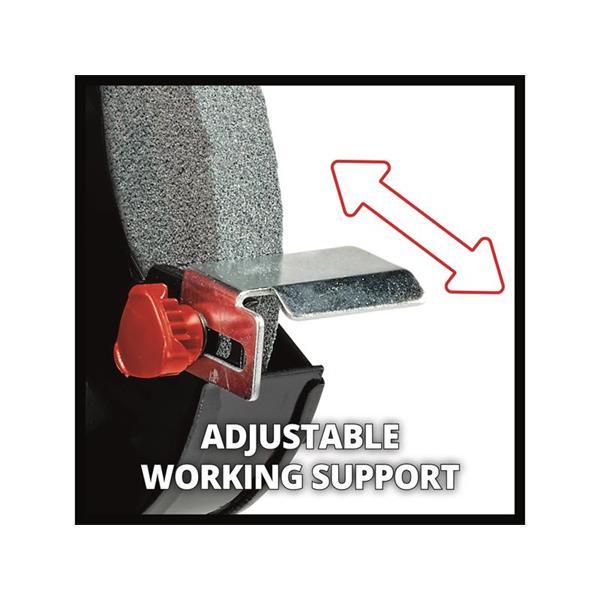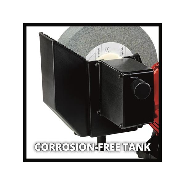 The Einhell TC-WD 200/150 Wet & Dry Bench Grinder is ideal for DIY enthusiasts, it can be used for sharpening blades of all kinds, drill bits, scissors or knives. The robust compact metal construction ensures the grinder has a long service life and the large water tank is made of corrosion-resistant material. Large adjustable work supports are helpful for a wide range of applications, while the ball bearing mounted shaft with zero play makes it possible to achieve precise results.