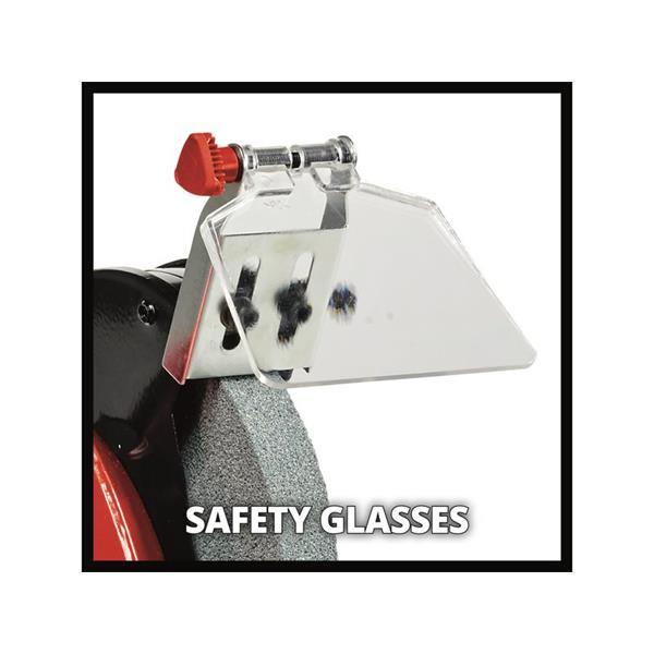 For safety there is a spark guard window which can be adjusted without any tools, plus guard hoods which are closed at the sides. Four rubber feet absorb vibrations and ensure a secure and steady standing position in operation.