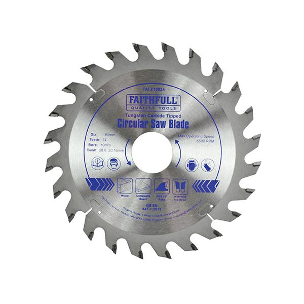 Faithfull Tct Circular Saw Blade 160 X 30Mm X 24T Pos