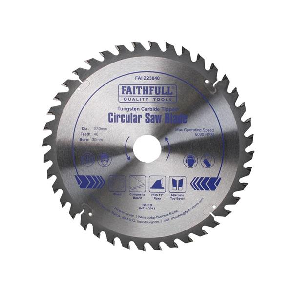 Faithfull Tct Circular Saw Blade 230 X 30Mm X 40T Pos