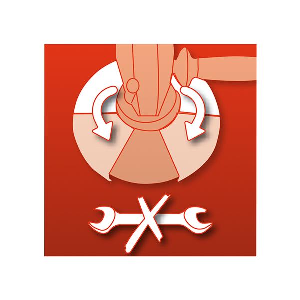 The TE-AG 115 is equipped with a sturdy, flat metal transmission head ensuring optimum power transmission and low-vibration operation, both of which make it easier to work in hard-to-reach areas. Thanks to its slim housing and the softgrip both on the main handle and on the additional handle, the angle grinder offers very high operating comfort. In addition, the additional handle, which can be fixed in three positions, can be optimally adjusted to the respective workpiece and thus ensures reliable hold for comfortable, safe working.