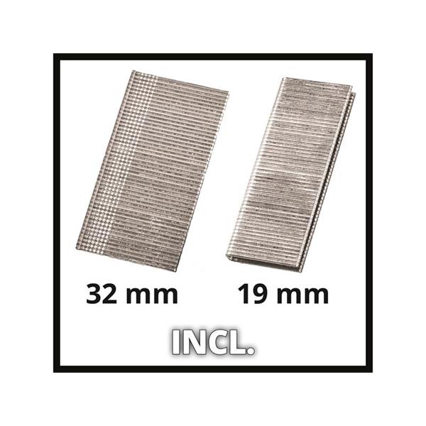 Delivery includes practical belt clip for safe storage and 300 nails (32mm) + 300 staples (19mm). With the supplied hexagon key, nail/staple jams can be easily and quickly fixed. Release protection prevents unintentional tacking/nailing, preventing injury.
